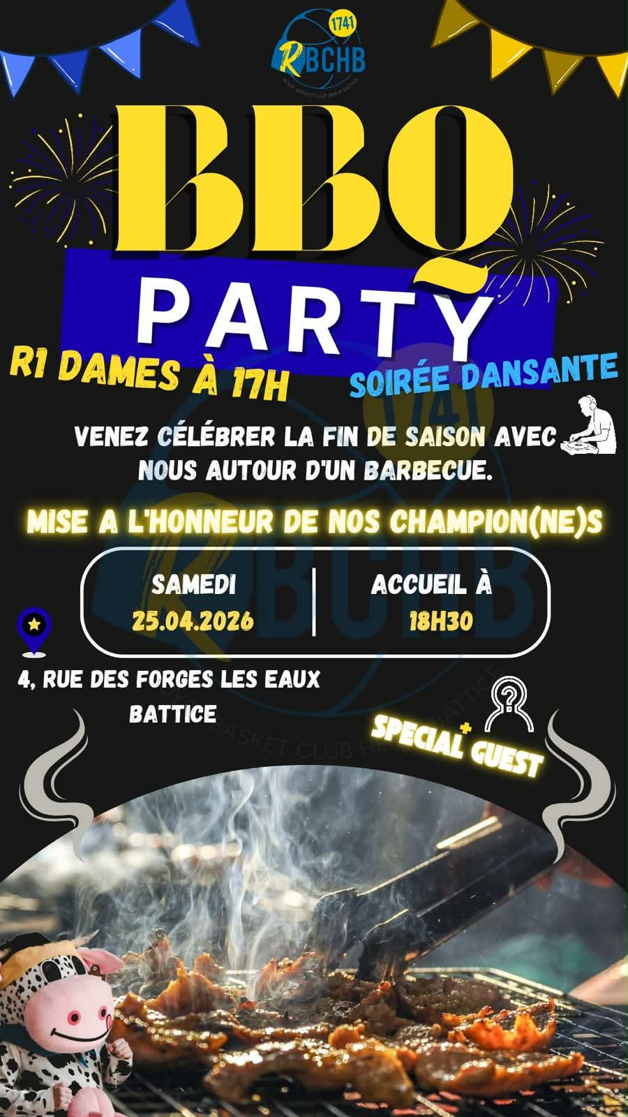 Nous clôturerons cette magnifique saison par notre traditionnel "BBQ". Celui-ci aura lieu le samedi 25/04, dès 18h30, à la petite salle.