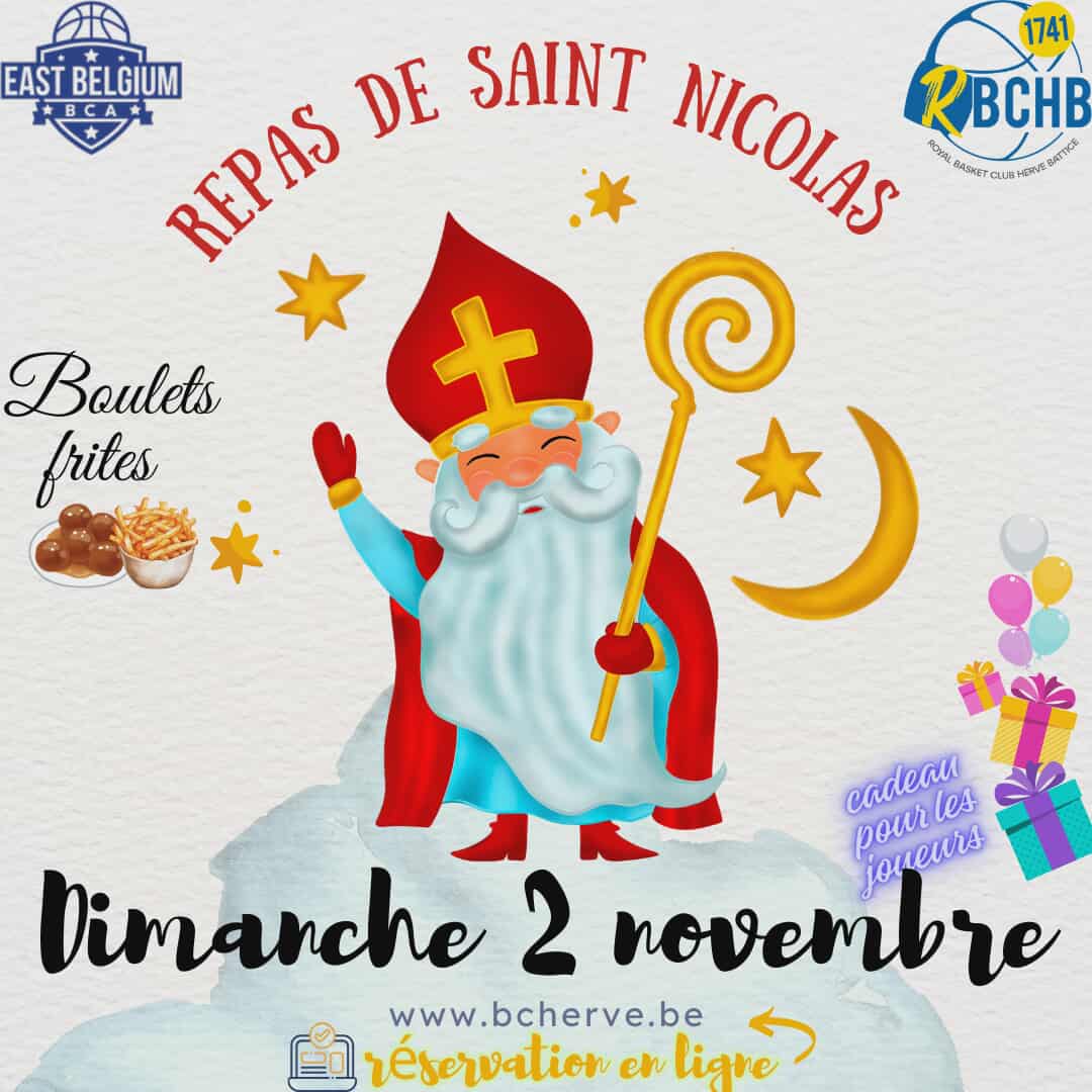 Saint-Nicolas rendra visite aux enfants sages du RBC Herve-Battice ce dimanche 2/11 à midi ! Au menu : le traditionnel boulet(s) / frites !